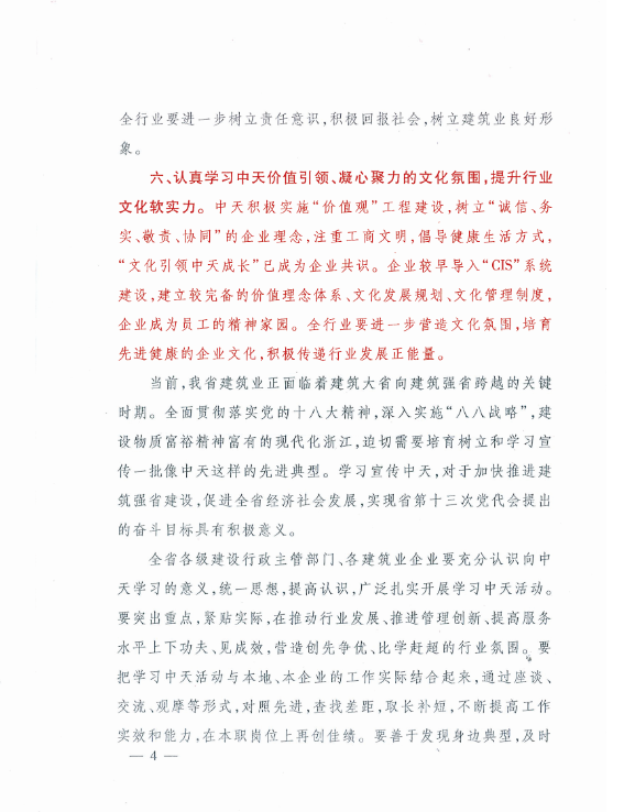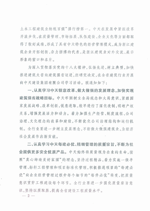 《浙江省住房和城乡建设厅关于在全省建筑行业开展向天九娱乐建设集团有限公司学习活动的通知》